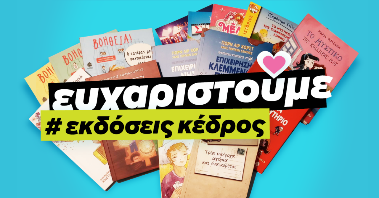 Ευχαριστούμε θερμά τις εκδόσεις Κέδρος για τη γενναιόδωρη προσφορά βιβλίων για τη δανειστική βιβλιοθήκη της ΣΤ τάξης του σχολείου μας!