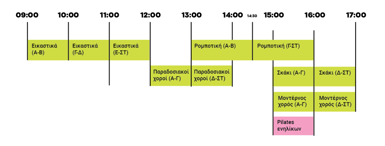 Θα θέλαμε να σας ενημερώσουμε ότι το πρόγραμμα των δραστηριοτήτων του Συλλόγου διαμορφώνεται όπως βλέπετε στην εικόνα. Τα τμήματα της Zumba (παιδιών και ενηλίκων) θα ξεκινήσουν στις 11/01/2020 με την επιστροφή μας από τις διακοπές των Χριστουγέννων. Τέλος, να σας ενημερώσουμε ότι δεν θα πραγματοποιηθούν δραστηριότητες κατά το μήνα Δεκέμβριο, λόγω του ότι το σχολείο μας είναι εξεταστικό κέντρο. Θα είμαστε σε επαφή μαζί σας για οποιαδήποτε περαιτέρω ενημέρωση.