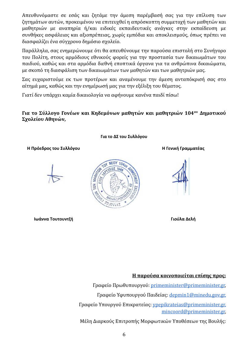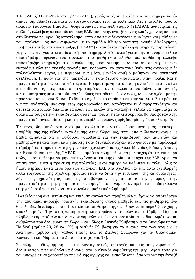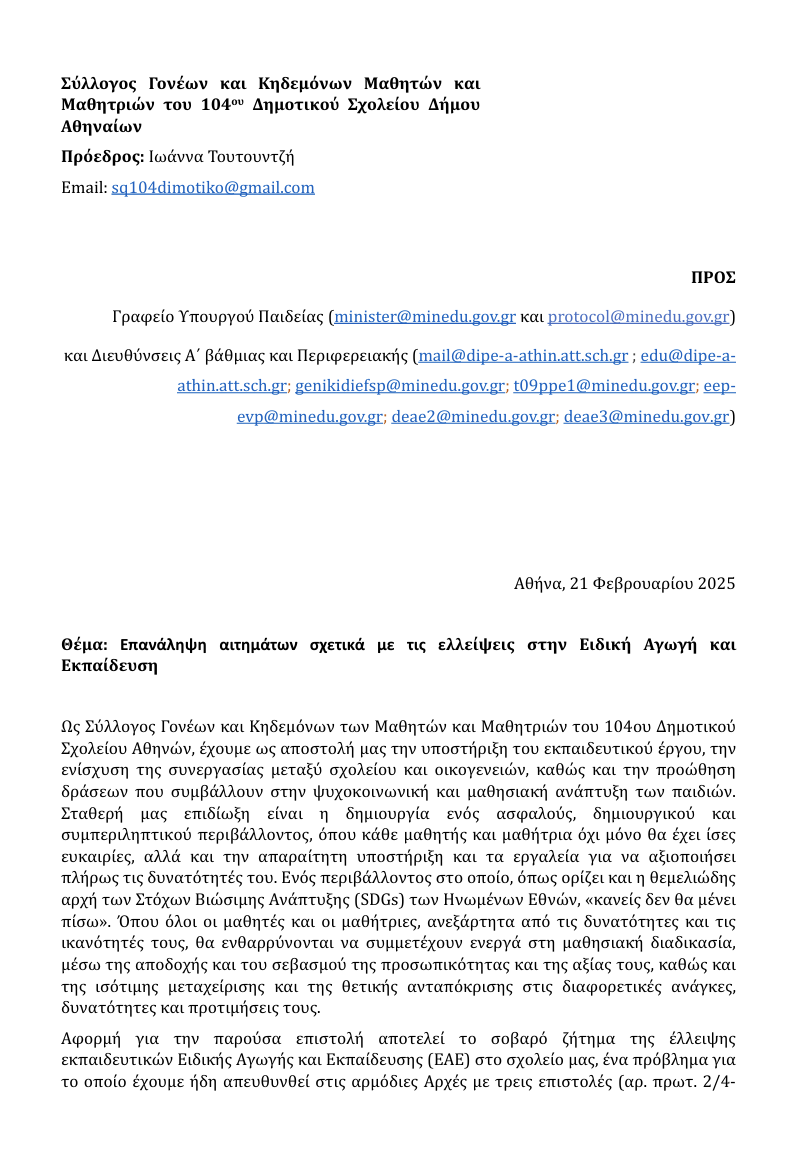 Επιστολή-Αναφορά για ΕΑΕ 21/02/2025
