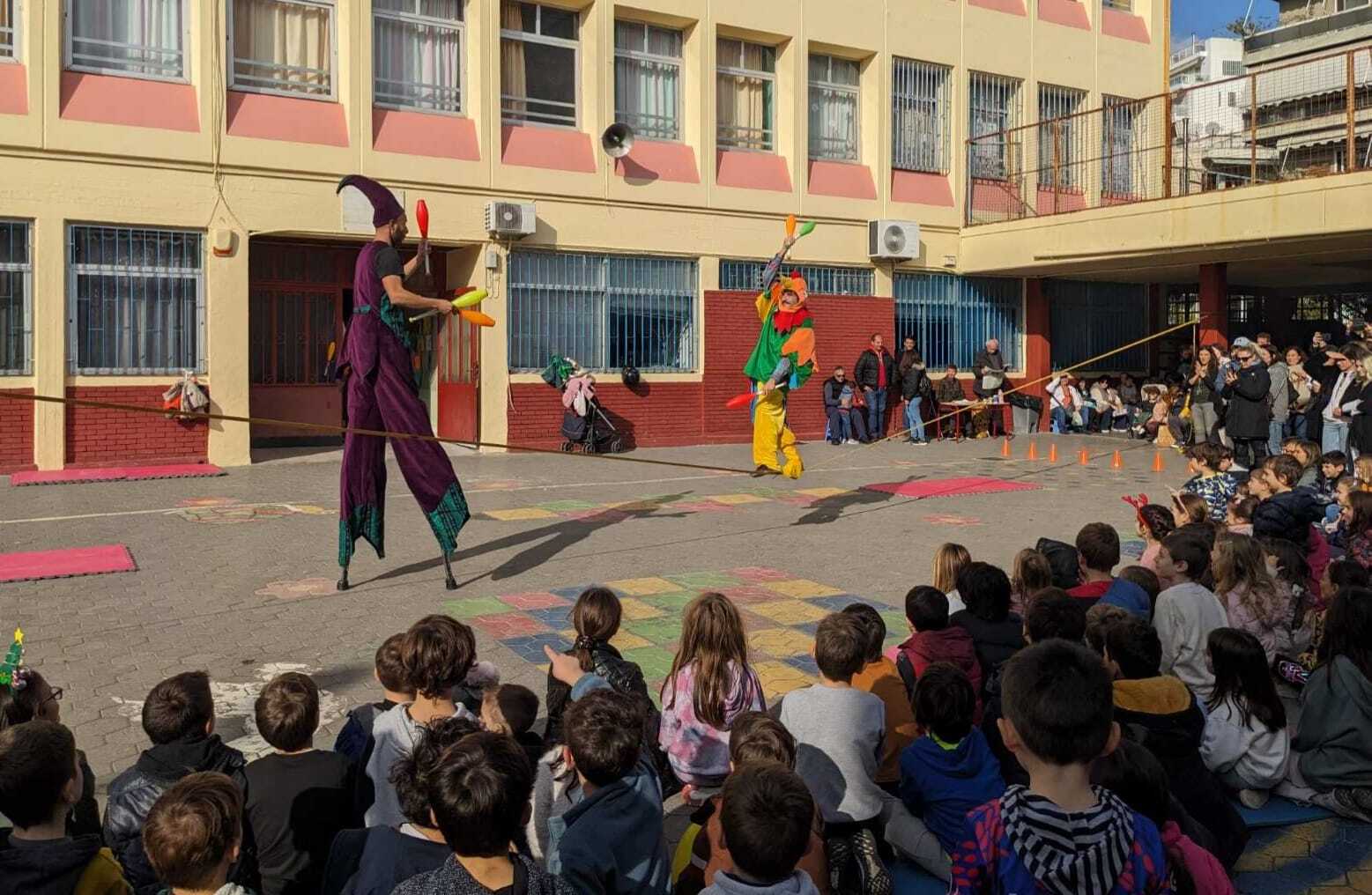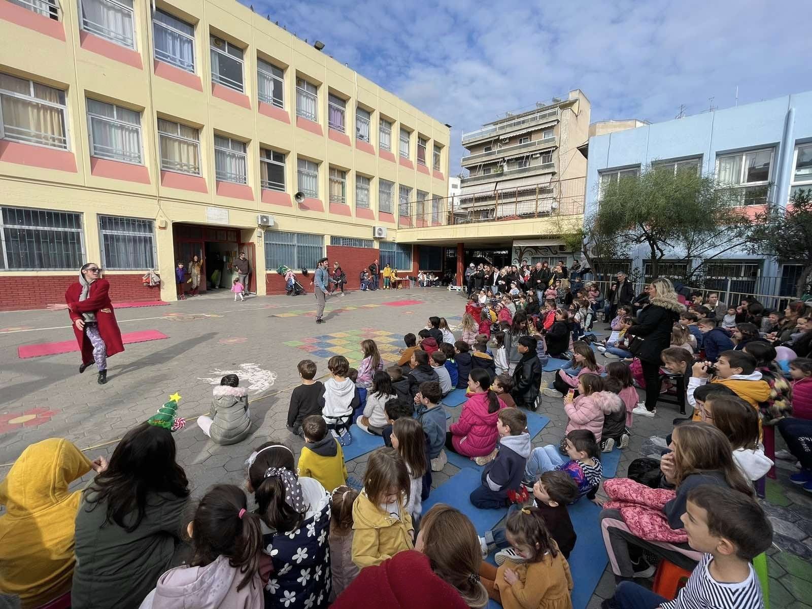 Γλυκίσματα, κατασκευές, εικαστικά εργαστήρια, χαρούμενα χρωματιστά προσωπάκια, μουσική και πολλά χαμόγελα! Οι μουσικοί με τα παραδοσιακά τους όργανα, παρέα με τις παιδικές φωνές μας ταξίδεψαν με κάλαντα απο τη Θράκη ως την Ικαρία! Το ανατρεπτικό τσίρκο με μια παράσταση Ωδή στην αποτυχία και τη δύναμη της συνέργειας και της ενθάρρυνσης γέμισε χρώμα, ενέργεια και χαρά την εορταστική αυτή ημέρα.