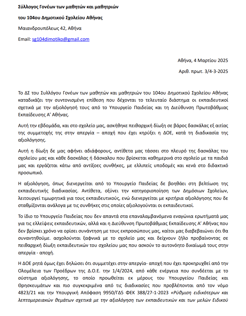 Κείμενο Στήριξης σε Δασκάλους 4/3/2025