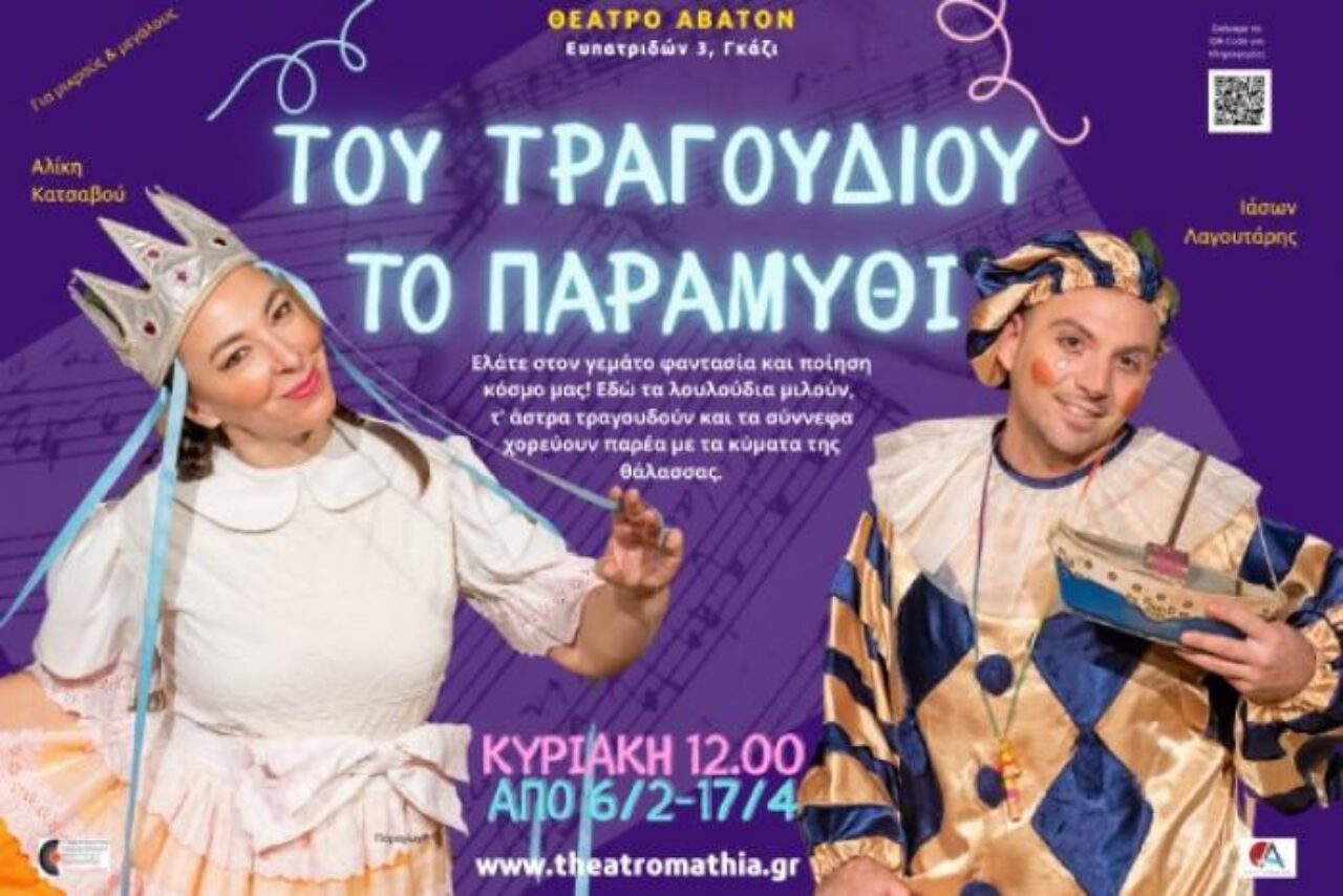O Σύλλογος Γονέων σας προσκαλεί στη θεατρική παράσταση "Του Τραγουδιου το Παραμύθι", στο θέατρο Άβατον, με 50% έκπτωση (τελική τιμή 5€ ανά άτομο), για την Κυριακή 6/3.